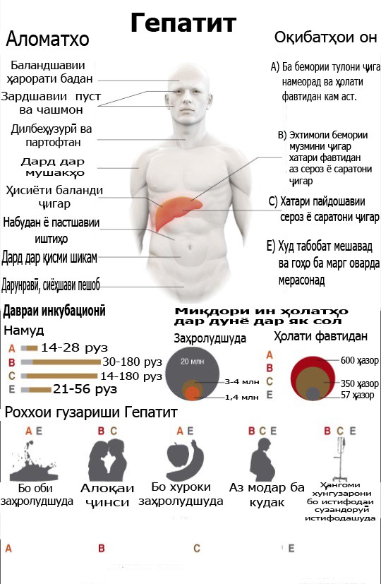 Барои мутлақо, ҷиҳати сироятёбии гепатит хотирҷамъ будан, ваксинатсия (эм) кардан лозим аст. Гепатитҳои вирусӣ бемориҳои сироятии интишорёфтаи хатарнок ба ҳисоб мераванд. Бемориҳои мазкур дар шаклҳои мухталиф зоҳир мешаванд, вале дар байни симптомҳои асосӣ - зардӣ ва дарди зери қабурғаи ростро ҷудо мекунанд. Ба хотири ташхис гузоштан бояд таҳлили хун, пешоб ва дар ҳолатҳои вазнин бошад, биопсияи ҷигар зарур аст. Аз тамоми анвои гепатит, гепатити А нисбатан паҳншудатарин ба шумор меравад. Аз лаҳзаи сироятёбӣ то пайдо шудани аломатҳои аввалини беморӣ аз 7 то 50 рӯз мегузарад.